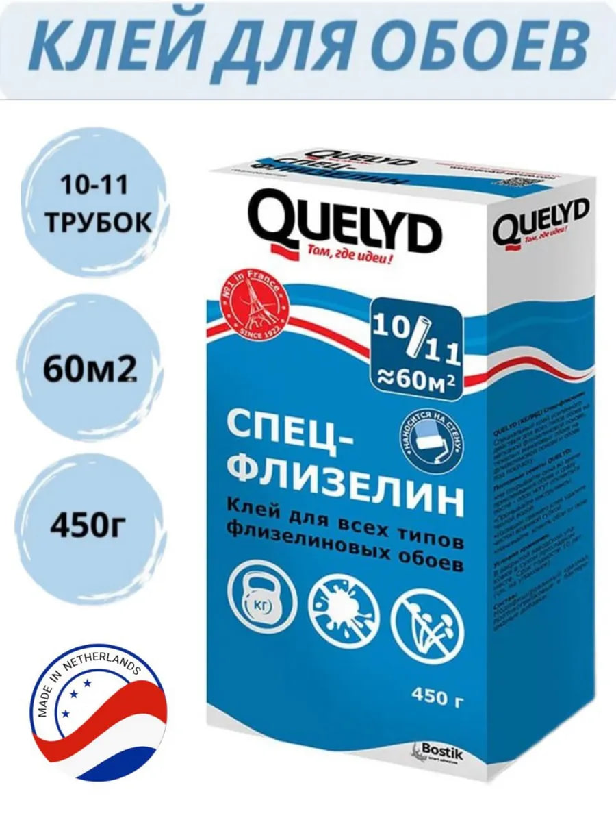 Ссылка для заказа: Клей обойный Quelyd спец-флизелин 450 гр